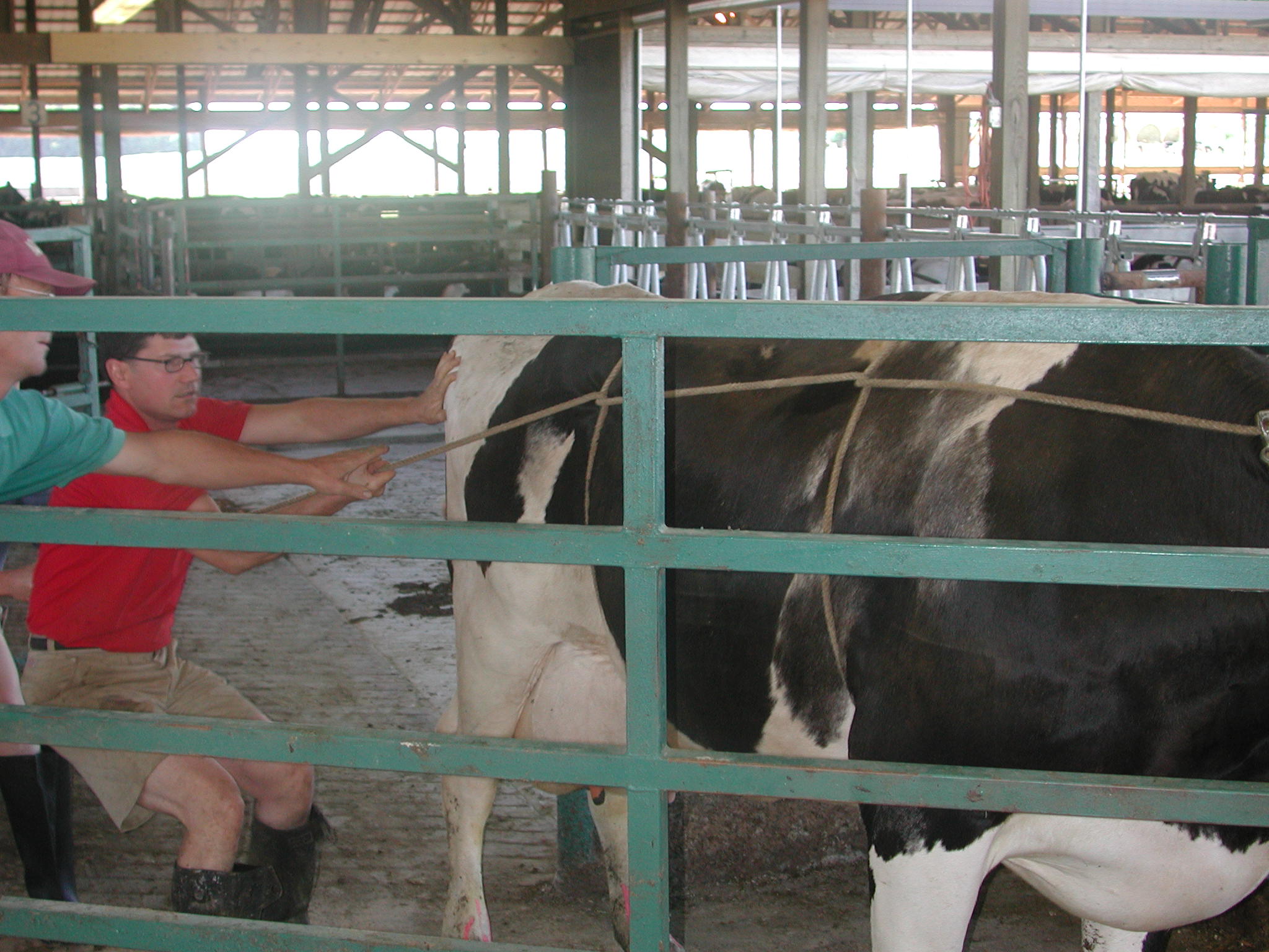ein Helfer, bei größeren Kühen besser 2 kräftige Helfer), kann zu Beginn eine